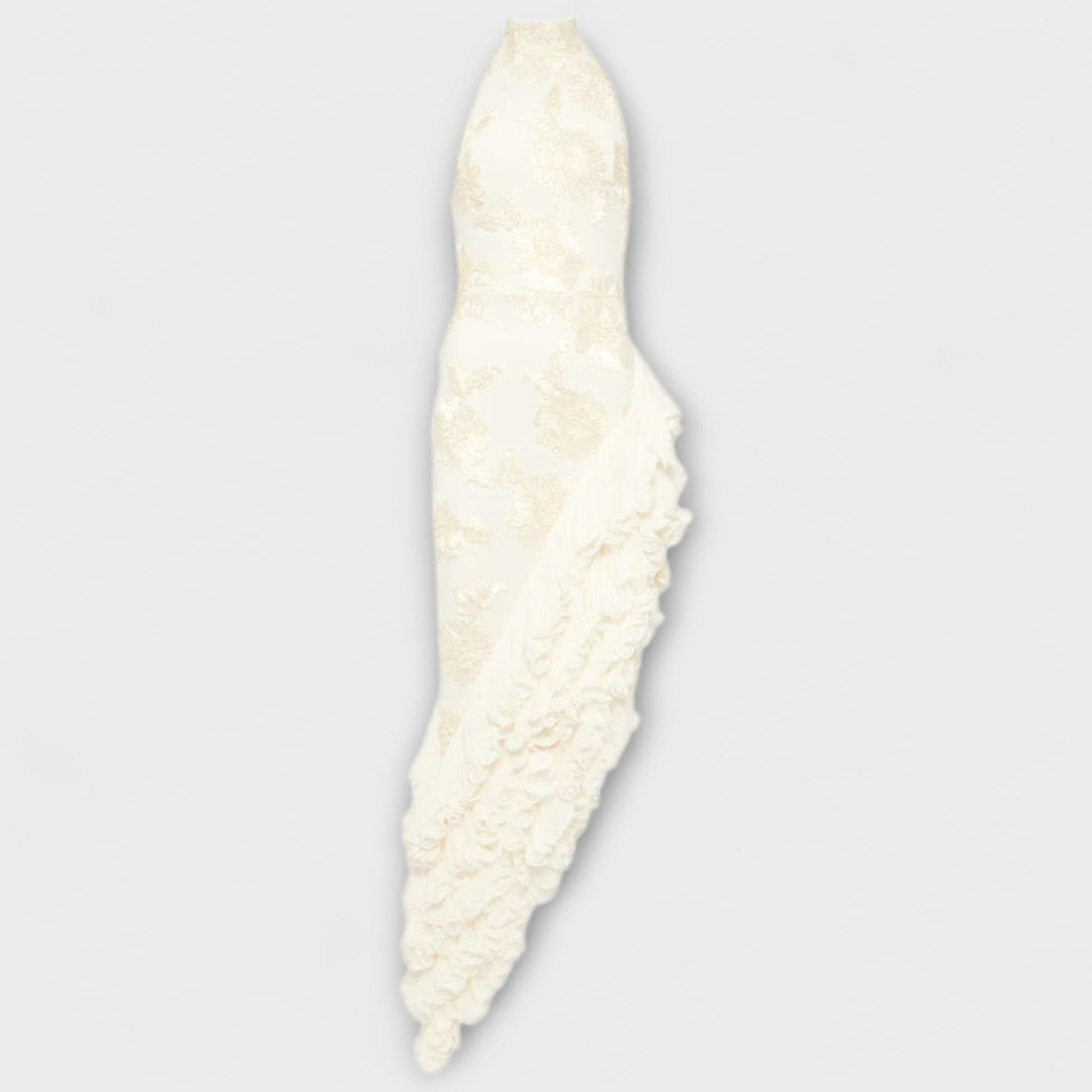 Experience ethereal elegance with our maxi dress featuring floral appliqués, a stunning blend of romance and grace. This enchanting piece showcases delicate 3D floral appliqués that bloom across a flowing, floor-length silhouette.